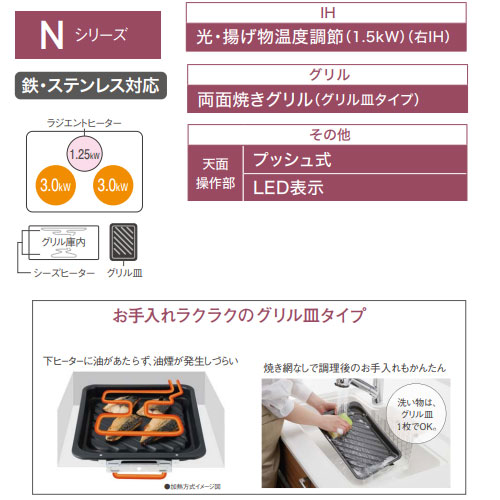 ・天面操作部:プッシュ式(左右IH・ラジエント、グリル)