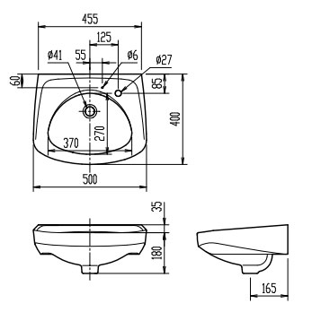 洗面器単品[壁掛式][角形][そで付小形][水栓取付穴径:φ27][右側1ヶ所][ゴム栓取付用穴あり]