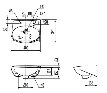 手洗器単品[壁掛式][角形][平付大形][水栓取付穴径:φ27][右側1ヶ所][ゴム栓取付用穴あり]