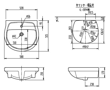 ・水栓取付穴径:φ36 1ヶ所