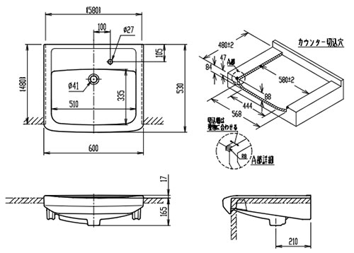 ・水栓取付穴径:φ27 1ヶ所
