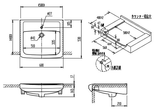 ・水栓取付穴径:φ27 1ヶ所