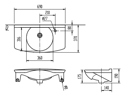 ・限られた空間にすっきり納まる奥行370mmの省スペース設計の壁掛洗面器です。