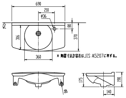 ・別売のφ36mmの穴径の水栓と組み合わせて使用して下さい。