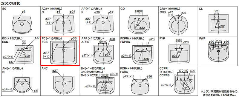 (LIXILカラン穴形状種類:FCS)