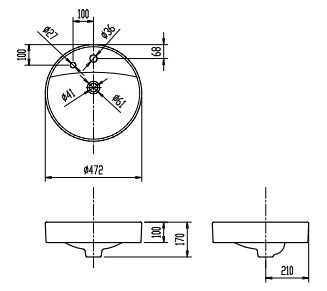 洗面器単品[ベッセル式][円形][水栓取付穴径:φ36、φ27][2ヶ所]