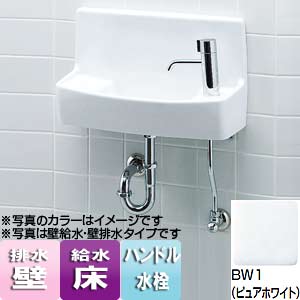 手洗器セット[壁付式][単水栓][専用ハンドル水栓][床給水][壁排水][ピュアホワイト]