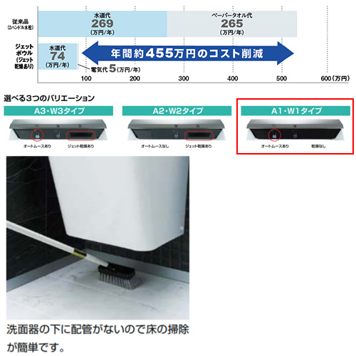 ジェットボウル[多機能洗面器][壁掛タイプ][A1タイプ][ハイパーキラミック][壁給排水]