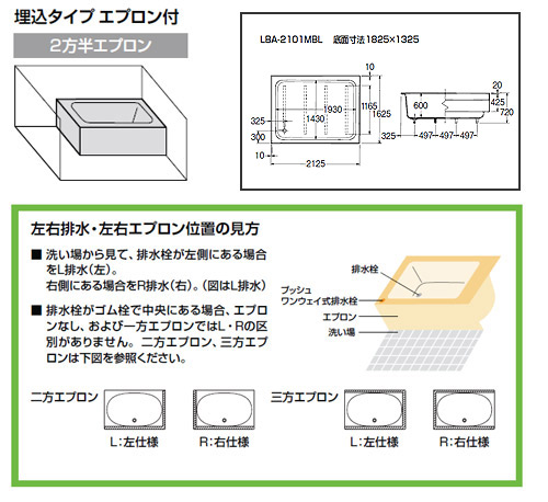●浴槽 大型バス[埋込浴槽][和風タイプ][2100サイズ][2方半エプロン][ゴム栓]