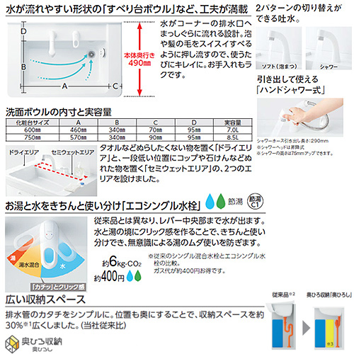 ・洗面ボウル材質:人工大理石製(不飽和ポリエステル系樹脂)