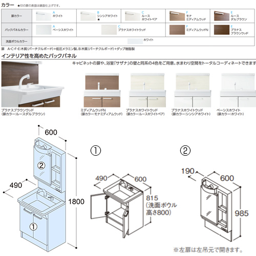 ※扉とバックパネルの組み合わせは予め決めさせて頂きます。他の組み合わせがご希望の場合はお問合わせ下さい。