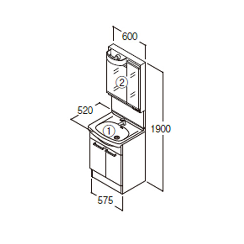 洗面化粧台セット Aシリーズ[間口600mm][高さ1900mm][2枚扉][エコシングル混合水栓][2面鏡][LED][くもり止め][一般地寒冷地共用]