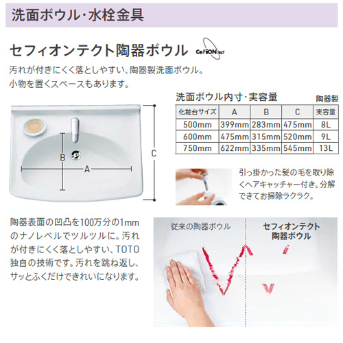・洗面ボウル陶器製、セフィオンテクト仕様