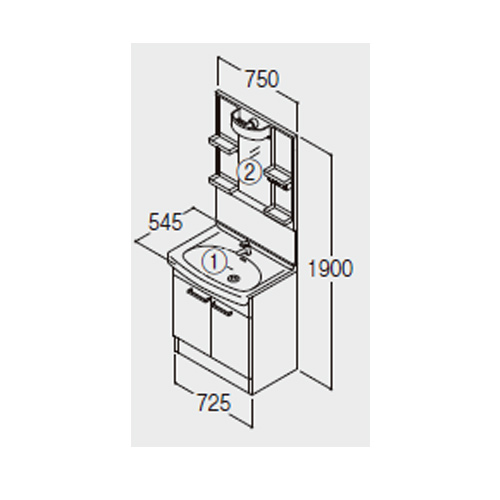 洗面化粧台セット Aシリーズ[間口750mm][高さ1900mm][2枚扉][エコシングル混合水栓][1面鏡][LED][くもり止め][一般地寒冷地共用]