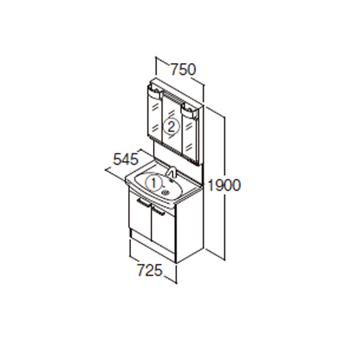 (1)LDSAS075BAGYG1* 洗面化粧台(2枚扉・自動水栓(アクアオート))