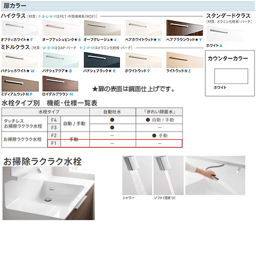 ・扉材質:W/B/RはDAP、パーチ 9/Z/P/Mはメラミン化粧板、パーチ