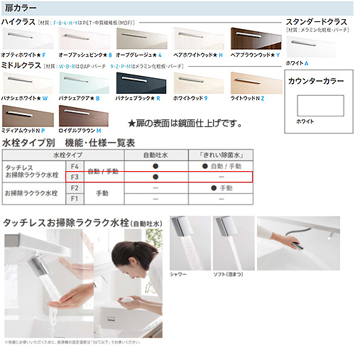 ・水栓金具:F3(タッチレスお掃除ラクラク)