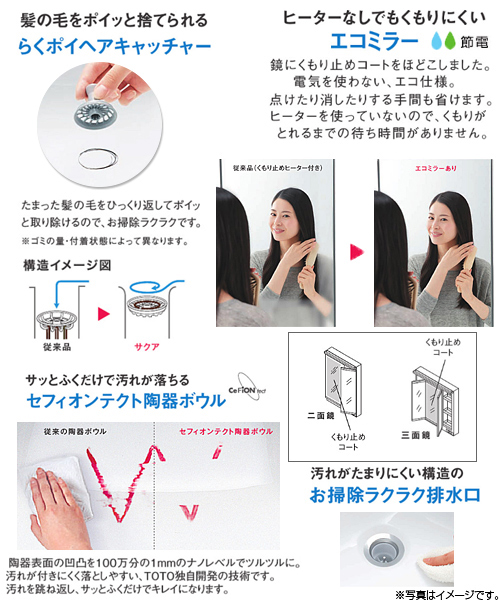 お掃除しやすい陶器ボウルをはじめ、家事や身支度がはかどる機能が満載。