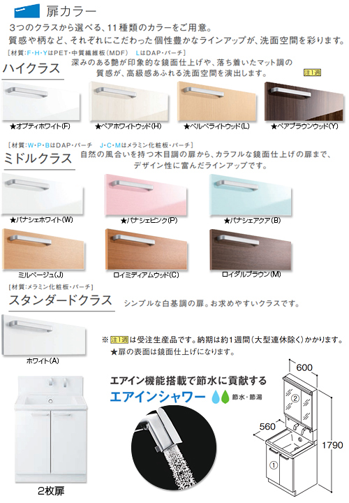 ・扉材質:F/H/YはPET、中質繊維板(MDF) Lはパーチ