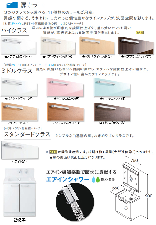 ・扉材質:F/H/YはPET、中質繊維板(MDF) Lはパーチ