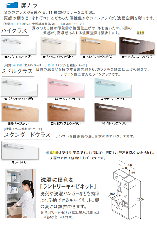 ・扉材質:F/H/YはPET、中質繊維板(MDF) Lはパーチ