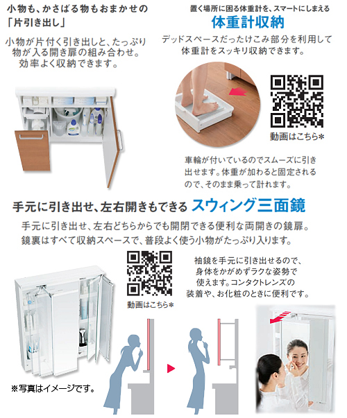 お掃除しやすい陶器ボウルをはじめ、家事や身支度がはかどる機能が満載。