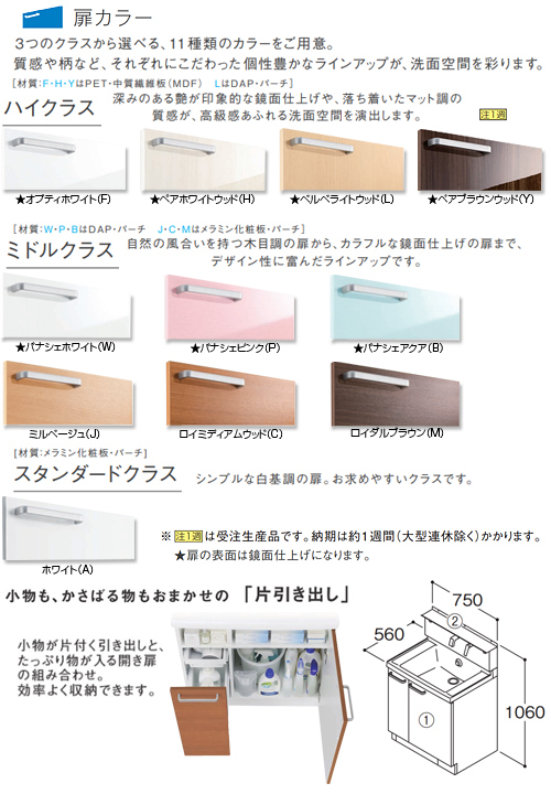 ・扉材質:F/H/YはPET、中質繊維板(MDF) Lはパーチ