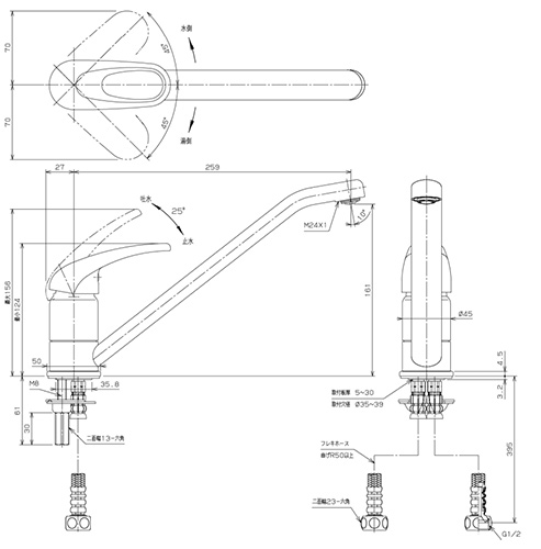 キッチン用蛇口 Vスタイル[台][シングルレバー混合水栓][泡沫][一般地]