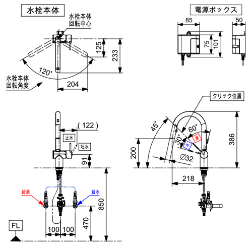 ・水栓回転角度:120度