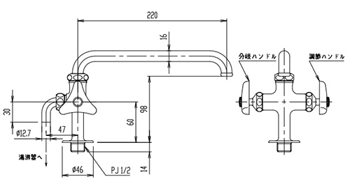 ●ユーティリティ用蛇口[台][自在水栓][分岐水栓][スパウト220mm][一般地寒冷地共用]