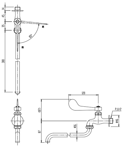 ユーティリティ用蛇口[壁][自在水栓][レバー式][スパウト300mm][一般地寒冷地共用]