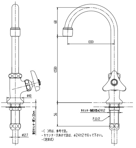 キッチン用蛇口[台][立水栓][マルチシンク用水栓][排水栓なし][一般地寒冷地共用]
