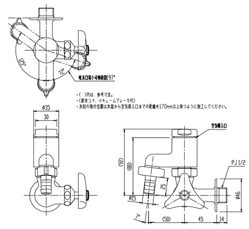 バキュームブレーカにより、負圧による逆流を防止する仕様です。