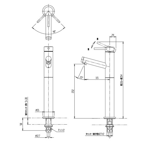 流量調節が片手で出来るシングルレバー仕様で、操作も簡単です。