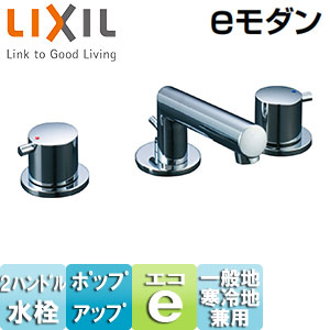 洗面用蛇口 eモダン[台][2ハンドル混合栓][ポップアップ式][一般地寒冷地共用]