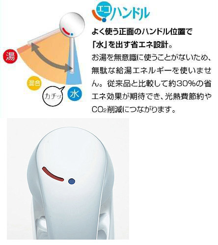 エコハンドルなので、お湯を無意識に使うことがないため、無駄な給湯エネルギーを使わないため省エネ効果が期待できます。