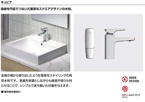 直線を円弧でつないだ重厚なスクエアデザインの水栓。