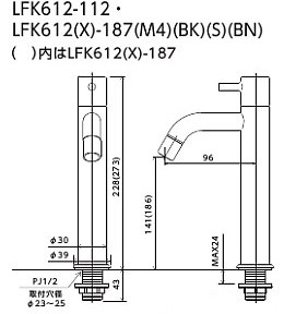 ●洗面用蛇口 LFK612Xシリーズ[台][単水栓][泡沫][ロングボディ][給水専用][黒クロムめっき][一般地・寒冷地共用]