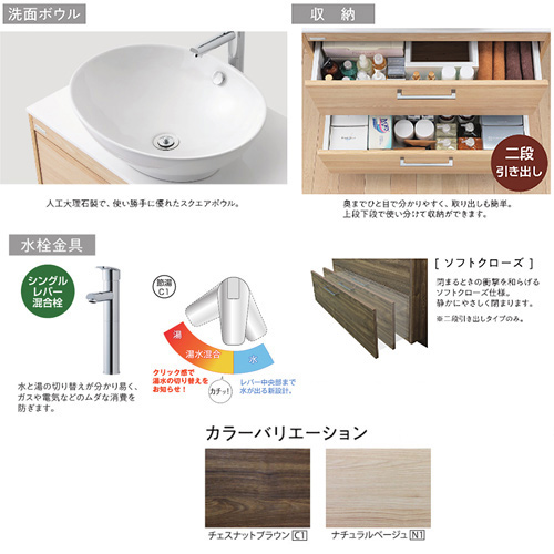 (1)洗面化粧台(2段引出タイプ)