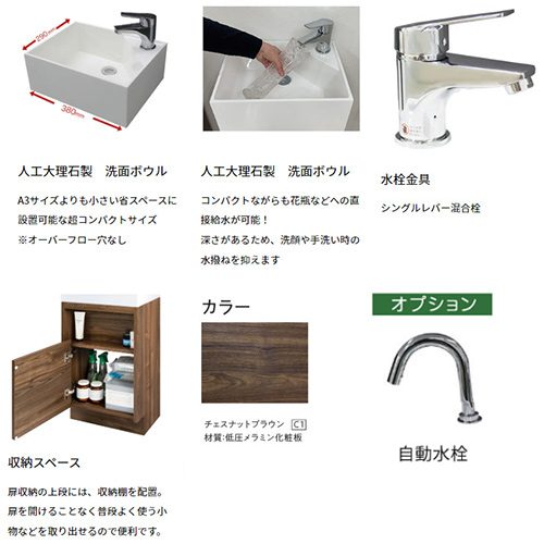 コンパクト洗面台[間口380mm][片開き][シングルレバー混合水栓][床排水][一般地]