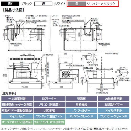 ●レンジフード プレミアムプラスシリーズ[シロッコファン][幅90cm][スリム型][常時換気][コンロ連動][シルバーメタリック][右排気]