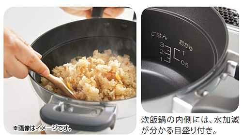 内側には水加減がわかる目盛り付き。