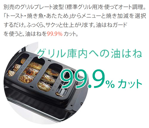 油はねを軽減し、グリル庫内をキレイに保ちます。