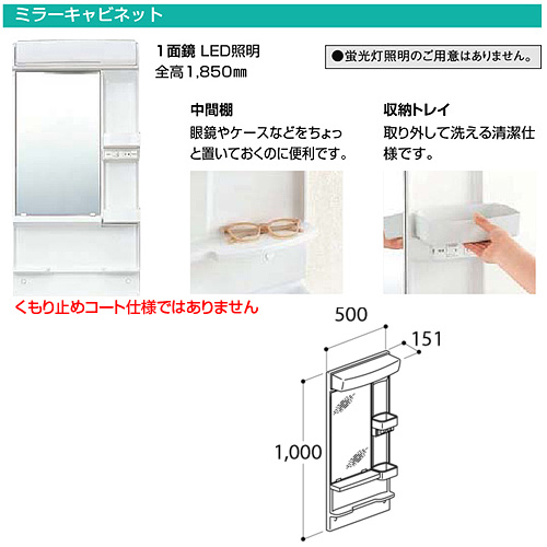 ミラーキャビネット オフト[間口500mm][全高1850mm用][1面鏡][LED]