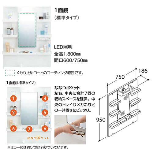 ・1面鏡(くもり止めコートあり)