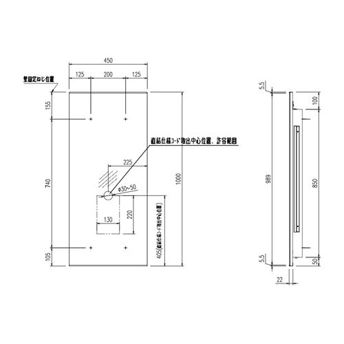 ・サイズ:450×75×1000(有効鏡寸法448×3×996)