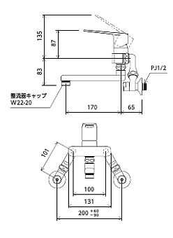 キッチン用蛇口[壁][シングルレバー混合水栓][首長170mm][延長ソケット仕様・100mm][一般地]