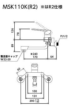 MSK110KR2|KVK|キッチン用蛇口[壁][シングルレバー混合水栓][スパウト240mm][一般地]|リフォームネクスト