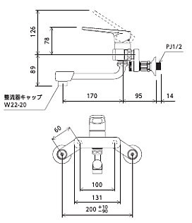 キッチン用蛇口[壁][シングルレバー混合水栓][首長170mm][楽締めソケット付][一般地]
