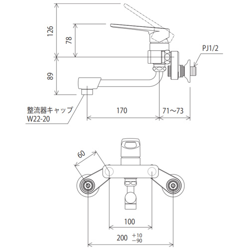 キッチン用蛇口 楽付王[壁][シングルレバー式混合栓][一般地]